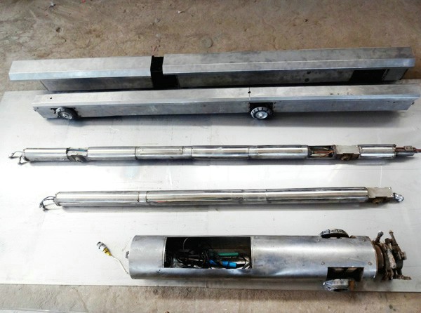 89-159-219補(bǔ)口機(jī)主要結(jié)構(gòu)由行走、定位、除銹、供料、旋噴和控制等部分組成。行走系統(tǒng)可控制設(shè)備在管道內(nèi)正反兩個(gè)方向爬行;定位系統(tǒng)采用COMS定位裝置,操作人員通過(guò)控制箱可直觀、準(zhǔn)確、方便地確定要補(bǔ)口補(bǔ)傷的位置;除銹系統(tǒng)可有效對(duì)環(huán)向焊縫及相鄰區(qū)域進(jìn)行除銹以及搭接邊的拉毛等處理;液體涂料的供料系統(tǒng)針對(duì)A、B組份有各自獨(dú)立的料倉(cāng)和料泵,并配置有恒溫供料系統(tǒng);雙組份涂料經(jīng)專用泵供至旋噴槍并在充分混合和霧化后涂敷至管道內(nèi)表面;粉末涂料補(bǔ)口時(shí),需要管道外的中頻加熱設(shè)備配套作業(yè)。補(bǔ)口機(jī)器人工作時(shí)所有的操作指令都通過(guò)控制箱上的按鍵來(lái)實(shí)現(xiàn)遠(yuǎn)程搖控作業(yè)。
